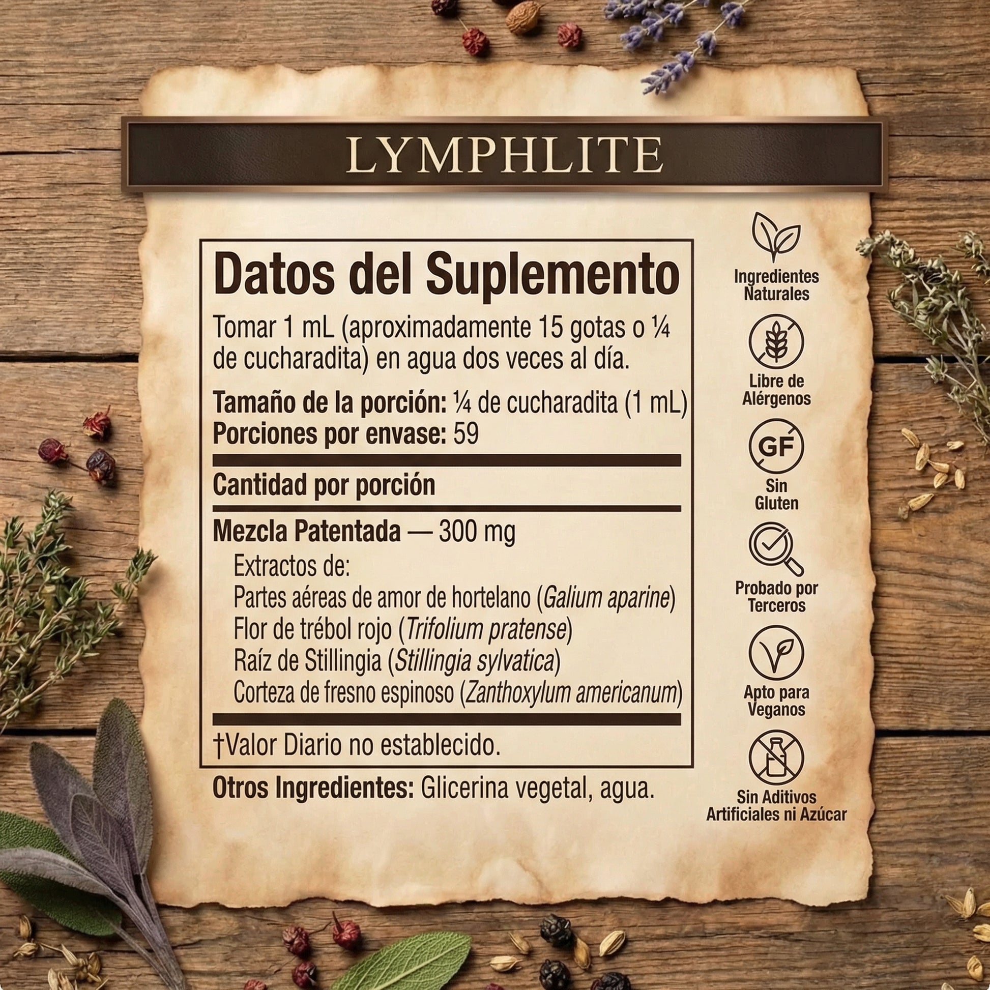 • Amor del hortelano (Cleavers / Gaillet Gratteron): Ayuda a reactivar el flujo linfático saludable para reducir la retención de líquidos y la hinchazón visible.